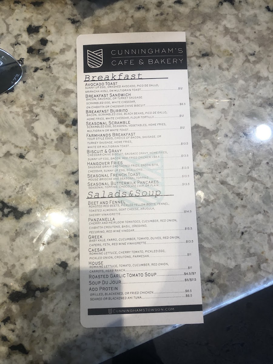 Cunningham's Cafe & Bakery Menu
